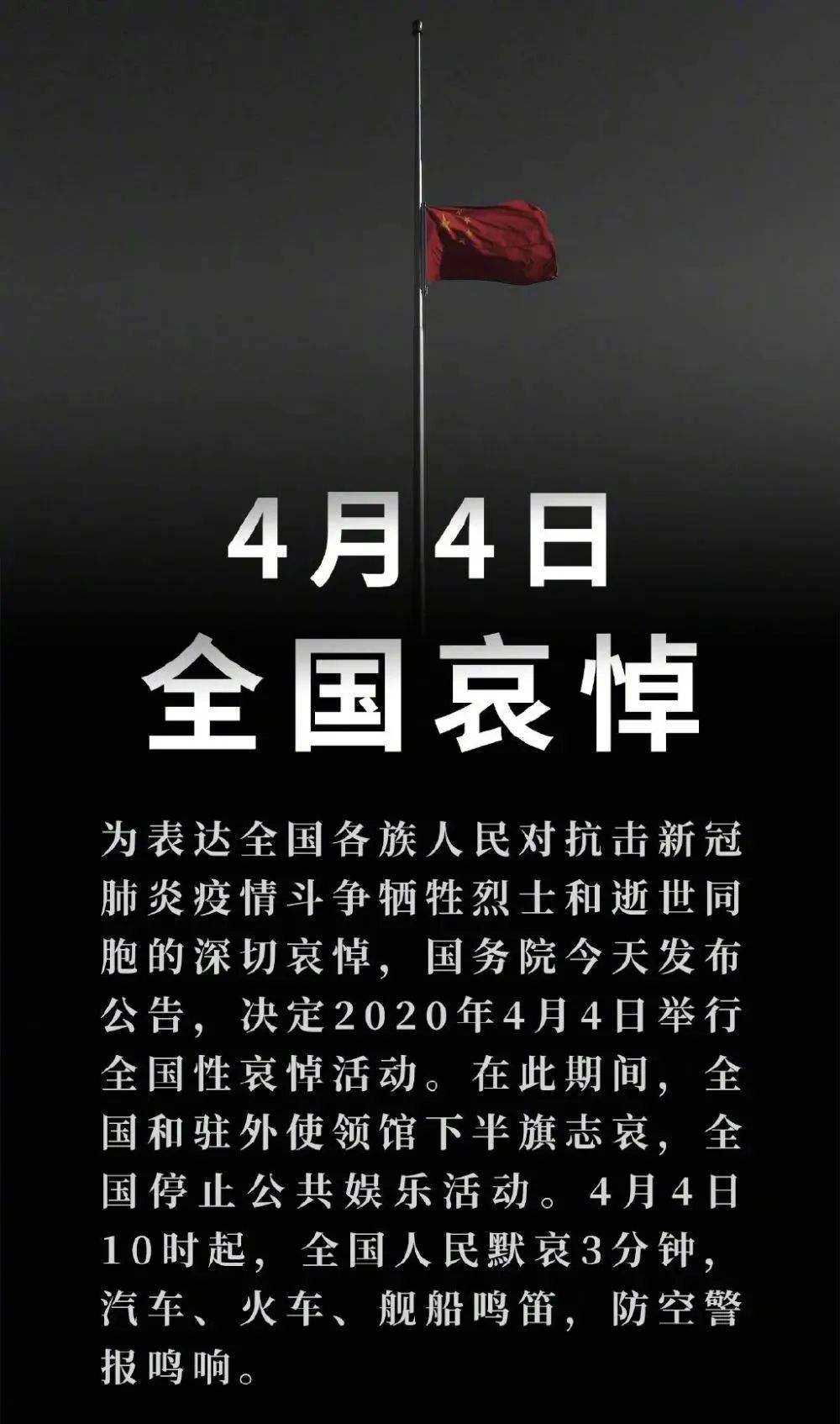 2020年4月4日清明全國哀悼,愿逝者安息